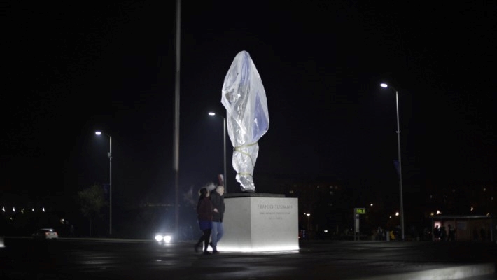 Kip je to koji je izazvao brojne polemike, prvenstveno zbog cijene koja je plaćena kiparu koji ga je i izradio, a mnogi su rekli kako kip uopće nije vjerna replika, odnosno vjerna kiparska reprezentacija lika našega prvoga predsjednika. Upravo zbog raznih polemiziranja, kritiziranja i vandalizma usmjerenih na kip, autor se odlučuje obraditi tu tematiku na zanimljiv način.Prije svega treba reći kako je ovo dokumentarni esejistički film u kojem nema naratora, nema sugovornika i nema nikakvih drugih zvukova osim zvukova grada koji dolaze iz raznih izvora. Dakle, film prikazuje događaje oko postavljanja kipa te popratnu situaciju nakon postavljanja. Situacija je to gradske ulice, odnosno gradskog prostora, situacija gradske buke i gradske vreve te vremenskih prilika. Iako se postavljanje pokrivenog kipa odvija postupno te domaći gledatelj prepoznaje o čijem se kipu radi, onaj neupućeni gledatelj, odnosno onaj koji nije s ovih prostora, zasigurno ne bi znao o čijem se kipu radi sve dok nakon postavljanja i finalizacije uređenja ne dobije pogled iz daljine na kip, na kojem i piše kome je posvećen.
