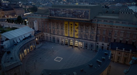 Nakon što su mu vraćene ukradene stvari, Christian se prepušta divljem provodu u taktu elektronske glazbe, vrlo blizu one u kojoj su uživali Jep i društvo – možda čak iste, da bi nakon toga razuzdano društvo preselilo u kraljevske prostorije zatvorene za javnost jer netko od sudionika zabave, poput Sorrentinovih likova, poznaje ključara antiknih prostorija te na kraju kustos, u Jepovoj maniri, završava u krevetu novinarke koja živi s bonobo majmunom. Muzej u kojem Christian uživa ugled dio je kraljevske palače – redatelj je iskoristio ozračje i ambijent Kraljevskog muzeja u Stockholmu. I Talijan i Šveđanin posežu za obrascem konceptualne umjetnosti kako bi se narugali duhovnim normama neoliberalnih zajednica. U oba slučaja, tik do konceptualne umjetnosti dječja je agresija, bijes ili plač.
