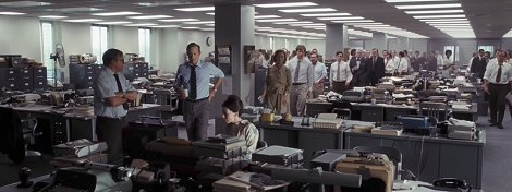 Navedeno je sasvim primjenjivo i na Novine, koje se bitno ne razlikuju od spomenutih naslova te pokazuju brojne dodirne točke s njima - kako na tematsko-idejnom, tako i na stilskom planu. Predmet interesa je Washington Post u prijelomnom trenutku njegova postojanja, kada je novine nakon suicida Philipa Grahama preuzela njegova supruga Katharine (Meryl Streep), koja do tada nije imala nikakvih poslovnih iskustava nego je svoju društvenu reputaciju, kao nekakva američka Clarissa Dalloway, stekla organiziranjem raskošnih prijema u svojoj rezidenciji. Washington Post će svoju pravu afirmaciju doživjeti tek nakon događaja iz Spielbergova filma, koji su doprinijeli da postanu mnogo više od lokalnih novina, ali kao što znate, to je predmet filma Svi predsjednikovi ljudi (All the Presidents Men, 1976) Alana J. Pakule. U Novinama se sagledava afera oko Pentagon Papers koji su procurili u javnost te razotkrili apsurdnost američke vojne intervencije u Vijetnamu, a njihovo objavljivanje uzrokovalo je prijetnju vlasti da će novinare i izdavače izvesti pred sud. Navedeno je redatelju okidač da povuče paralele s američkom sadašnjošću.Pritom su uočljiva dva plana. Prvi se bavi odnosom medija i vlasti, odnosno politike. Postavlja pitanje koliko je kompatibilno prijateljstvo između novinara, urednika, izdavača i političara, jer film naivno sugerira da bi mediji trebali predstavljati korektiv vlasti, što je - priznat ćete, možda nekad i funkcioniralo no danas je prošlo svršeno vrijeme. Novinarska etika, problematika cenzure te objektivnog izvještavanja trenutno je više nego aktualna i Spielberg to shvaća, pa vuče paralele s Trumpovom Amerikom. Prilikom toga, figura labilnog te osvetoljubivog Richarda Nixona, koji stoluje u Bijeloj kući, uvelike korespondira s današnjom administracijom Donalda Trumpa, manipuliranjem javnoga mnijenja te fabriciranjem lažnih vijesti.