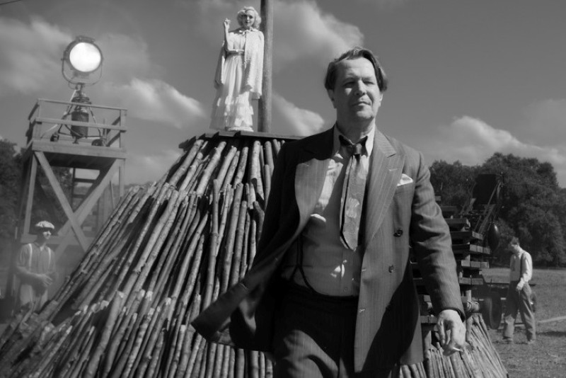Odgovor bi bio negdje između. Recentno mu ostvarenje svakako djeluje kao nostalgična posveta starom Hollywoodu. Čaroban svijet filma, događaji iza kulisa, studijski moguli, redatelji i scenaristi, raskošne zabave i bakanalije u turbulentnom dobu svjetske gospodarske krize te pod prijetnjom Drugoga svjetskoga rata progovaraju o sustavu koji je unepovrat prošao. Fincher vrlo živopisno rekreira stari Hollywood, njegovu dekadenciju i ekscentričnost, a naslovni lik predstavlja aktivno središte putem kojega se u suodnos dovode različiti pojedinci, skupine te suprotstavljene društvene i ideološke smjernice. Naspram često isticane ispraznosti filmskoga, odnosno studijskoga sustava i njegove zvjezdane hijerarhije kao mjesta eskapizma na kojem se proizvode iluzije za široku konzumaciju, redatelj postavlja Hermana J. Mankiewicza (Gary Oldman).