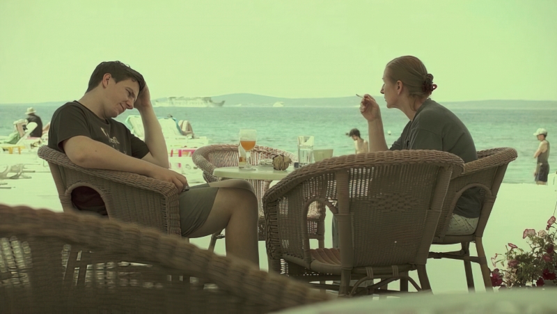 Od scene s majkom, preko one sa sestrom na balkonu, razvidni su skladni i razvijeni dijalozi logičnoga slijeda koji, s obzirom na samu tematiku, zaokružuju značenje filma. Tako dijalozi sa svim onim karakteristikama svakodnevnog govora splitskoga područja i dnevnih preokupacija običnoga čovjeka zaokružuju tematsko jedinstvo i usmjerenost filma. Također, u naznakama vidimo i društveno-političke implikacije u spomenu Bliskog istoka, Trumpa i sličnoga, uz poneku kulturološku implikaciju, a u Marininom odlasku u Saudijsku Arabiju prepoznajemo svu aktualnost današnjice – odljev radne snage izvan granica domovine. Također, znakove aktualnosti današnjice vidimo u nedostatku novca, kao i u činjenici duljeg studiranja protagonista.U odnosu brata i sestre prepoznajemo otvorenost odnosa, onoga bez tabu tema, kroz vrlo eksplicitan razgovor o seksu i prirodi odnosa sestre Marine s drugima. Također, na tu scenu izvrsno se nadovezuje istaknuta scena Paška i njegove djevojke na plaži. U „vrućem hodu“ kroz Split i znaku „ne sada“ prepoznajemo nadogradnju problematike izostavljenog sina, onog kojeg nitko ništa ne pita, nego stoički sve podnosi. Eksplicitni kadrovi početka seksa koji su dani u maniri nasilnog ponašanja započetog šamaranjem i pljuvanjem Šimuna u lice svoje djevojke zapravo su simbol potisnutoga bijesa, onog bijesa koji protagonist ne izbacuje iz sebe nego ide iz odnosa u odnos, iz situacije u situaciju, uvijek s istim problemima. Upravo takvo eksplicitno nasilno-seksualno ponašanje reprezentirano kroz dominaciju nad ženskom osobom manifestacija je njegovog odnosa prema ženama, zbog odnosa žena u njegovom životu prema njemu i zbog njegove tragike odrastanja u kojem majka često ne bira seksualne partnere, kao ni mjesto seksualnih radnji.
